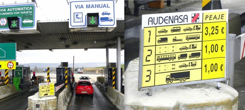 Photo Pierre Combemale Incroyable mais vrai : une autoroute espagnole près de Pampelune propose un tarif pour les camions trois fois moins cher que pour les voitures ! 1 euro contre 3,25 euros pour les automobiles. Qui dit mieux ?!