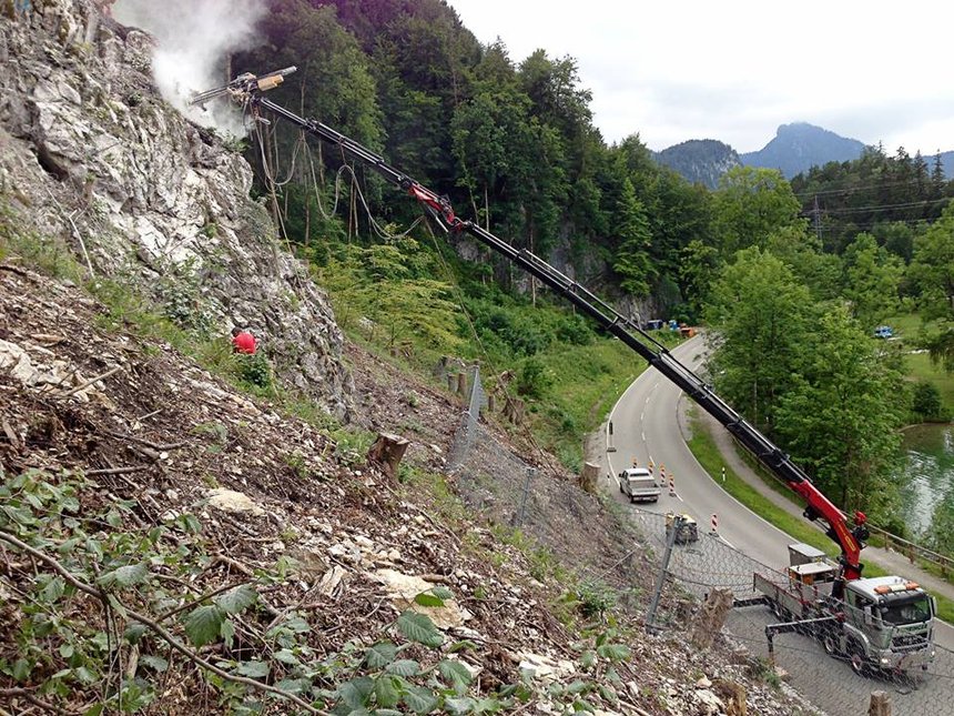 L’entretien des routes de montagne impose parfois d’importants travaux de stabilisation des parois rocheuses afin de prévenir les effondrements et les chutes de pierre. Une problématique que connaissent bien les Autrichiens qui n’hésitent pas, comme ici, à mettre en œuvre des moyens puissants pour réaliser ces opérations essentielles à la sécurité. La preuve avec cette association assez […]