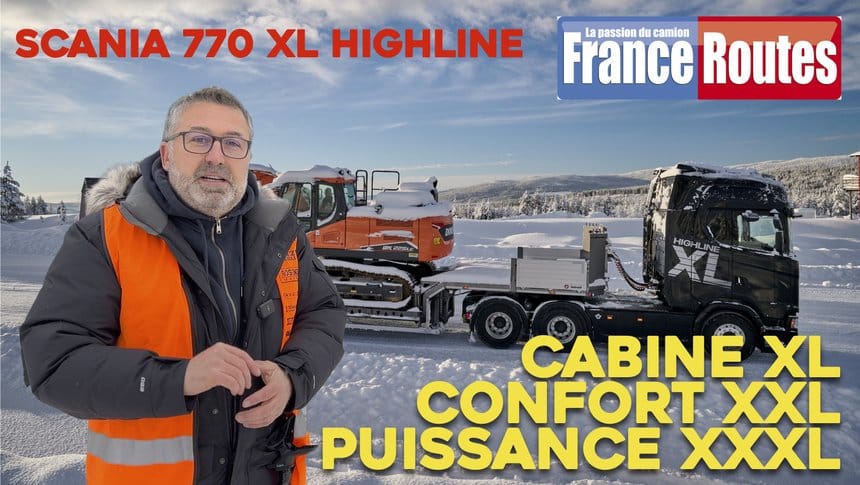 Une option chez la marque scandinave, cette cabine XL, qui rapproche le volume intérieur de ce tracteur à moteur V8 de celui d’un Daf XG+. Cet ensemble tracte une pelleteuse, il est chargé à environ 50 t. Là encore, sur cette pellicule de glace saupoudrée de neige glissante, l’usage de la suspension pneumatique s’avère décisif. […]