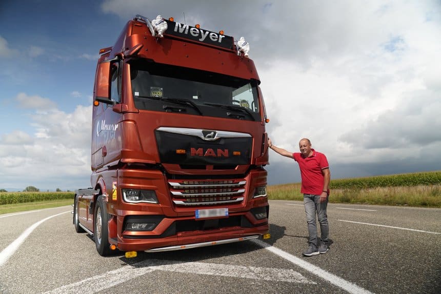 José Meyer, gérant des Transports Meyer, a commandé en avant-première ce TGX nouvelle génération lors d’un voyage pour les clients ambassadeurs de la marque MAN, sur invitation de son distributeur MAN EUPL, basé à Colmar (Haut-Rhin). Ce camion ne sera révélé au grand public qu’en février 2020 lors du lancement officiel.