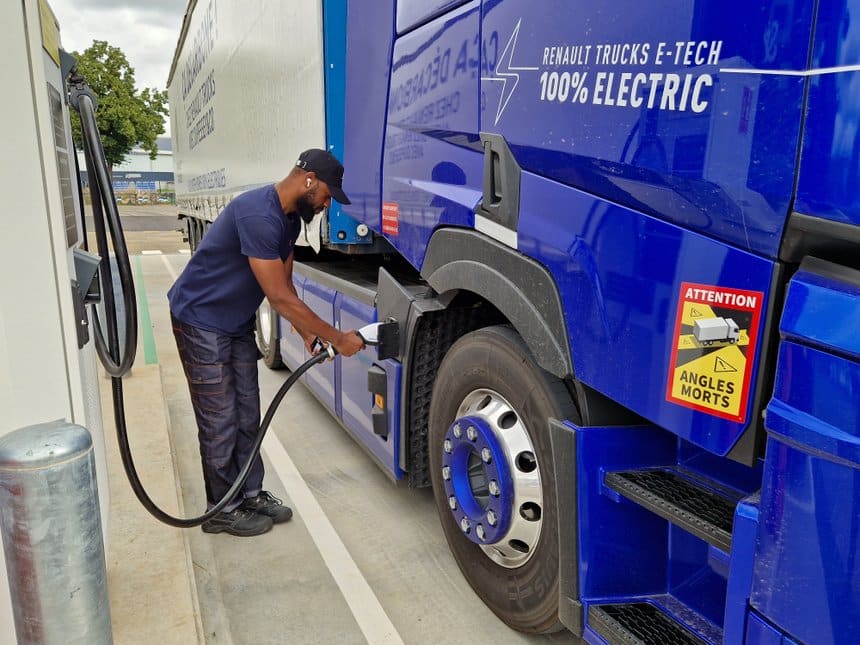 Ronas, conducteur lui aussi depuis plusieurs années, a depuis 4 semaines parcouru 5 000 km avec le E-Tech T. Le constat est clair : « Pas de bruit, pas de vibrations, c’est très confortable. La fin de journée est moins dure. Par contre, il faut faire plus attention aux piétons qui n’entendent pas le camion arriver. Si j’ai le choix entre un camion thermique ou électrique, je prends l’électrique ».