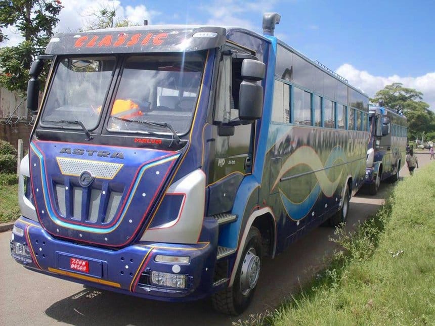 On remarquera au passage l鈥檌nt茅gration tr猫s r茅ussie de leur cabine 脿 une caisse d鈥檃utocar simple mais efficace et surtout robuste. Un travail r茅alis茅 localement par Malva, un carrossier kenyan sp茅cialis茅 dans les autocars de toutes tailles, du minibus au grand tourisme sur茅lev茅, dont la production est largement export茅e vers des pays comme le Soudan, le Congo ou l鈥橭uganda. Bien vu aussi la mise en peinture chatoyante et de belle facture.