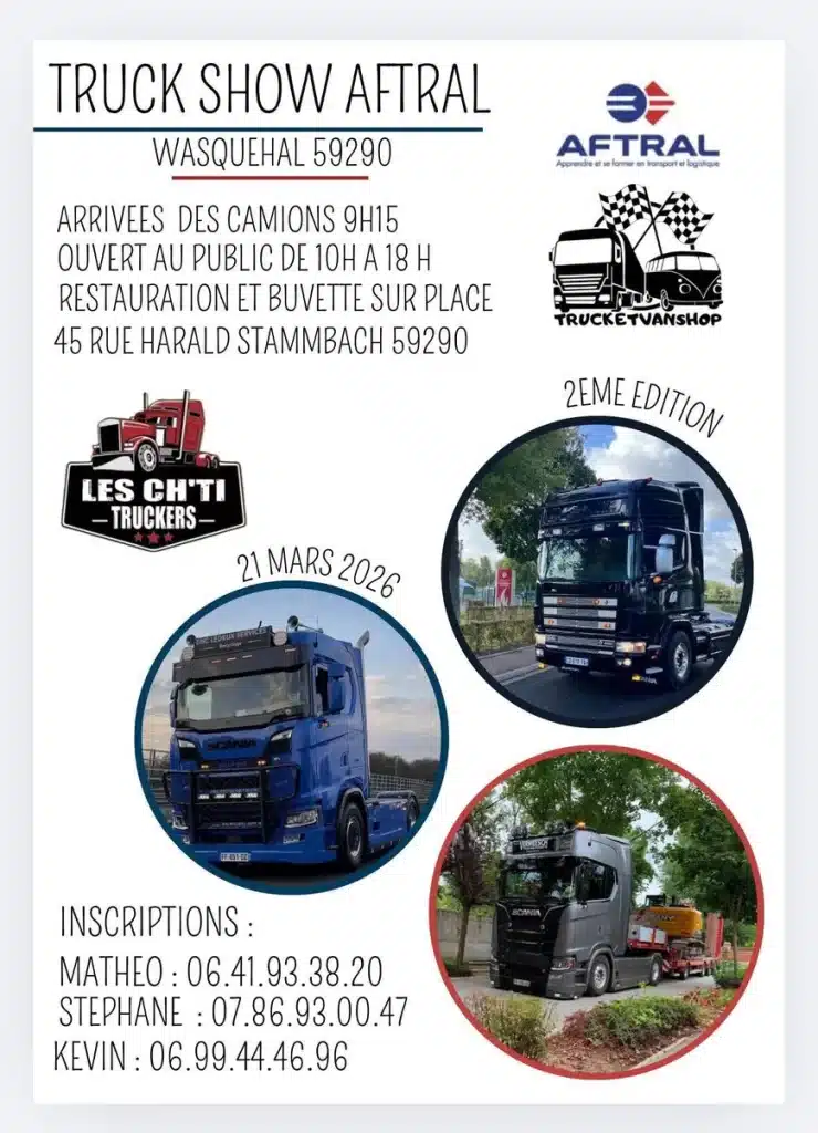 Durant la journée porte ouverte de l'Aftral, le samedi 31 janvier 2026, l'association les Ch'tis Truckers organise un rassemblement de…