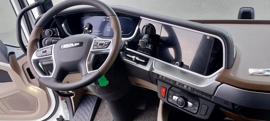 Daf XG+ de 480 ch. Ce camion répond aux critères demandés dans l’appel d’offres. Il dispose d’un maximum de places pour les élèves à l’arrière et de nombreux équipements de sécurité afin de former aux nouvelles technologies : Daf Corner View, rétroviseurs caméras pour réduire les angles morts et aider aux mises à quai, régulateur de vitesse prédictif basé sur le GPS, assistant aux performances du conducteur, etc.