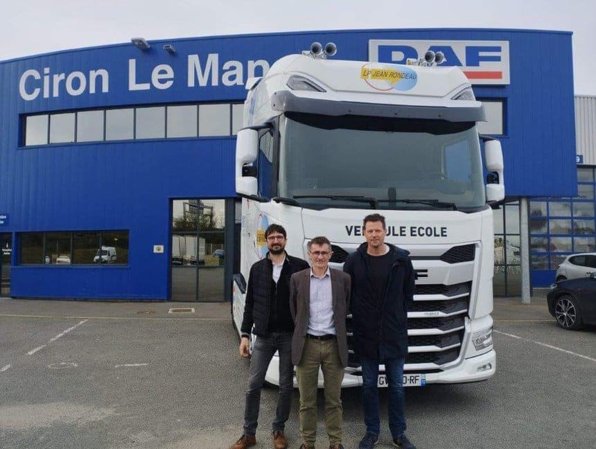 Ce lundi 6 mai, le lycée Jean Rondeau a connu une effervescence particulière. « Nous sommes allés chercher le Daf XG+ à la concession pour le ramener au lycée avec Alain Pattée, directeur des Formations professionnelles, raconte Gwénaël Cerveau, enseignant de conduite routière. Dès notre arrivée, les élèves sont montés à bord. Nous avons immédiatement fait une prise en main avec eux sur la Nationale 157 en direction d’Orléans. Une route intéressante avec des courbes et des dénivelés ».