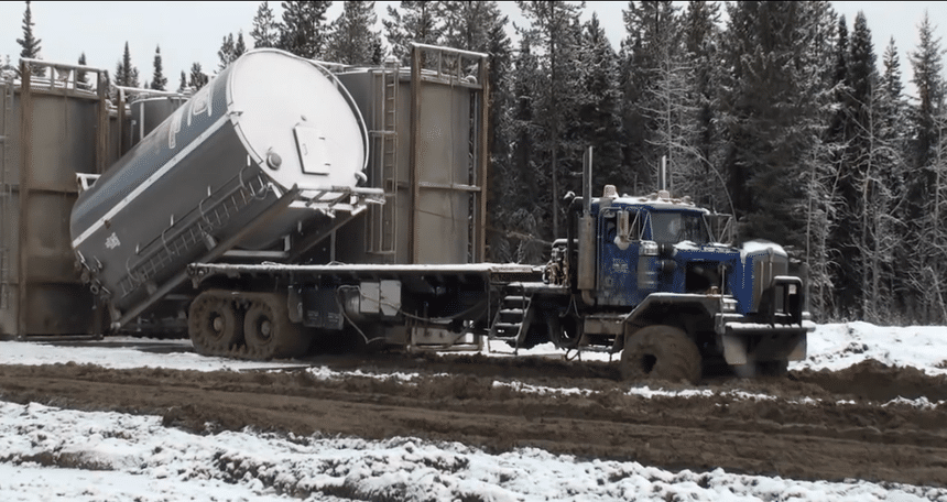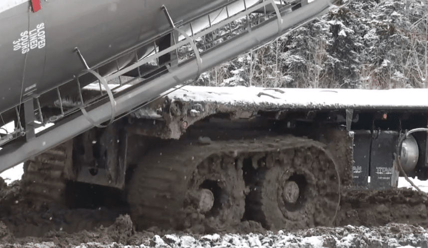 Les routes de l’Alaska ou du grand nord canadien ne sont pas celles de Provence ou d’Alsace, d’ailleurs, parfois, il n’y a plus de routes du tout. Juste des pistes. Et s’il pleut (ou au dégel), c’est un peu la panique pour continuer à travailler. Certes, il n’y a pas des masses de routiers qui doivent impérativement circuler dans ces régions par ces temps-là. Mais au moins deux secteurs d’activité imposent une permanence du service : les exploitations pétrolières et les grandes mines à ciel ouvert. Donc, il faut bien qu’un peu de monde s’y colle. Et le mot est peut-être mieux choisi qu’on ne pourrait le croire. Parce qu’un camion qui s’enlise dans ces terrains mous et détrempés s’y trouve littéralement « collé », « aspiré », pour un bon moment. C’est la hantise de tous ceux qui roulent ici. Et tous, un jour ou l’autre, finissent par en faire l’amère expérience.