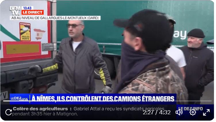 Pressé par les agriculteurs en colère qui débranchent la remorque, le routier espagnol finit par descendre de sa cabine et ouvrir les portes arrière.