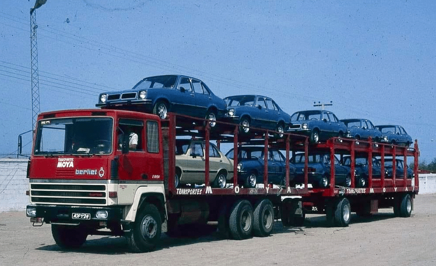 On voit tout de suite que l’on n’est pas en France, pas même en Europe (ci-dessus). Ce GRH 280 6×4, carrossé en porte-voitures, opérait en effet au Chili, au début des années 1980. Il s’agit d’un modèle de dernière génération, doté de la calandre large introduite en 1977 sur les GR/TR 305 (6 cylindres à suralimentation inter-refroidie) et GR/TR 350 (V8 à suralimentation simple). Le Chili était alors, avec Cuba, le principal débouché de Berliet en Amérique Latine.