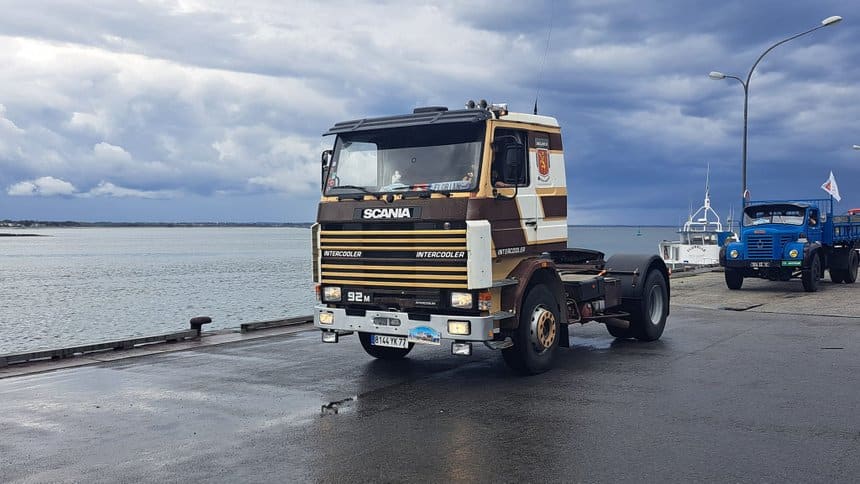 Après l’obtention des permis poids lourd, Florian roule en Mercedes-Benz 1933 dépanneuse de 1985. Pendant plusieurs années, le mécano achète et sauve plusieurs véhicules. En 2019, il trouve un Scania R 92 M, ex-tps Delisle, sur l’ile d’Oléron. « Comme c’est un camion qui a bercé mon enfance, je suis allé le chercher avec un ami. Nous avions un porte-engins et dessus, nous avons pu mettre aussi un Volvo FH 12 de 1993 !»