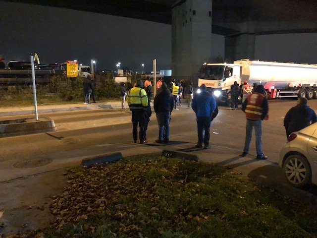 3h30 du matin devant les dépôts TotalEnergies de Gennevilliers (Hauts-de-Seine), Coignières (Yvelines) et Mitry-Mory (Seine-et-Marne), ce lundi 4 décembre. Le froid et la pluie n’empêchent pas les militants de la CGT Transports de distribuer des tracts aux routiers conduisant les ensembles citernes matières dangereuses pour le compte du géant pétrolier.