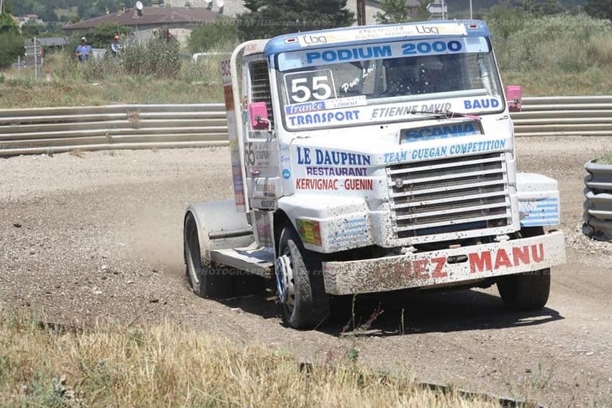 En catégorie Cross, le pilote breton Olivier Guegan l’emportait, bien campé dans son Scania L113 n°55 à capot.