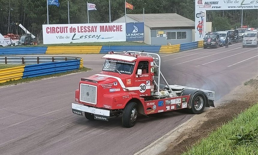 En catégorie Cross, le leader Nicolas Grand (Renault Premium #36), qui avait fait un sans-faute en essais et première manche, a été contraint à l’abandon dès la seconde. Alors qu’il menait la course, le moteur du Renault a lâché, le week-end était terminé. Les cartes sont redistribuées dans cette catégorie, difficile de prédire un vainqueur avant la finale à Saint-Junien. Le Volvo rouge #30 de Yoan Peytour a mené la danse tout au long du week-end normand, et se hisse sur la première marche du podium. Grâce à une stratégie des tours jokers bien étudiée et à des manches régulières, Ludovic Skrzypezyk (Renault #51) parvient à monter sur la deuxième marche et devient le leader de la catégorie Cross. Gaëtan Condom et son Scania clôturent le podium.