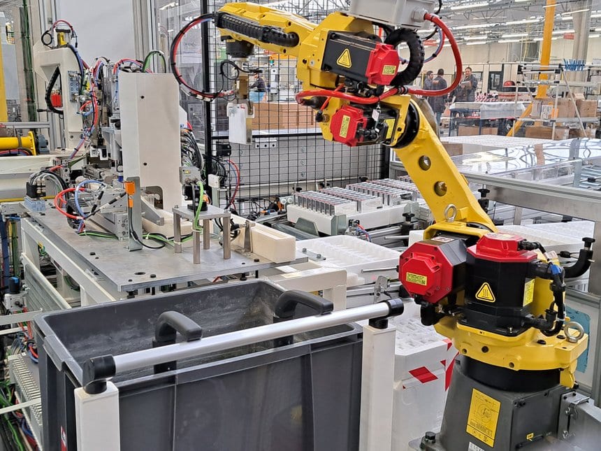- Le premier composant qui arrive sur la chaîne de production est la cellule (un acumulateur électrique).