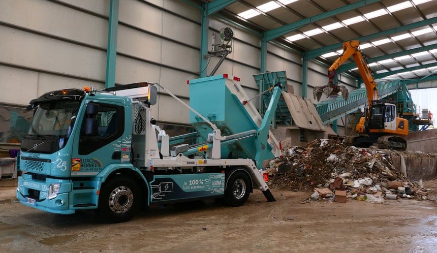 C’est une première dans l’activité de la collecte et du recyclage de déchets du BTP : l’entreprise Luxo Bennes, qui officie en région parisienne, vient d’acquérir un camion électrique, un porteur Volvo eFE équipé d’un portique à chaînes électrique lui aussi, carrossé par Hyva et pouvant embarquer une benne de 7 tonnes.