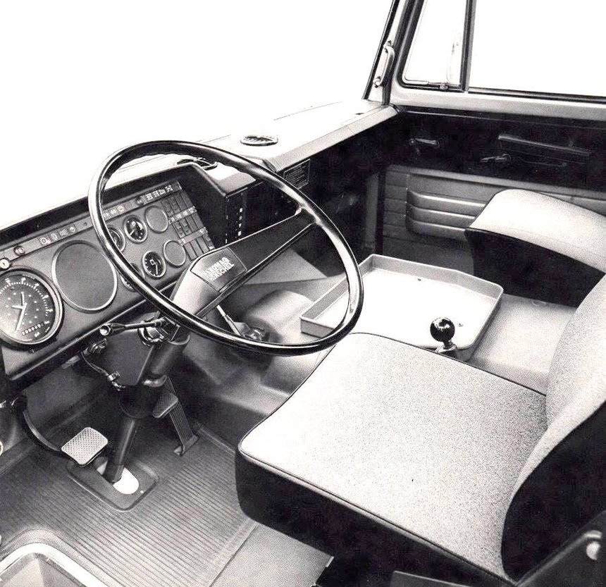 Par rapport à la version initiale, l’esthétique était améliorée, avec une calandre redessinée, un grand pare-brise galbé, d’une seule pièce et d’une hauteur de 650 mm et une inclinaison de 20°. L’aménagement intérieur était également revu avec notamment un nouveau tableau de bord, bien conçu et très lisible, un volant réglable en hauteur et en inclinaison. Le capot moteur était par ailleurs peu proéminant, permettant l’implantation d’un troisième siège central en option. Surtout, cette cabine était désormais basculable, améliorant considérablement l’accès à la mécanique. Généralement commandée en version longue avec couchettes, elle était cependant disponible en version courte pour des trafics en courte distance.