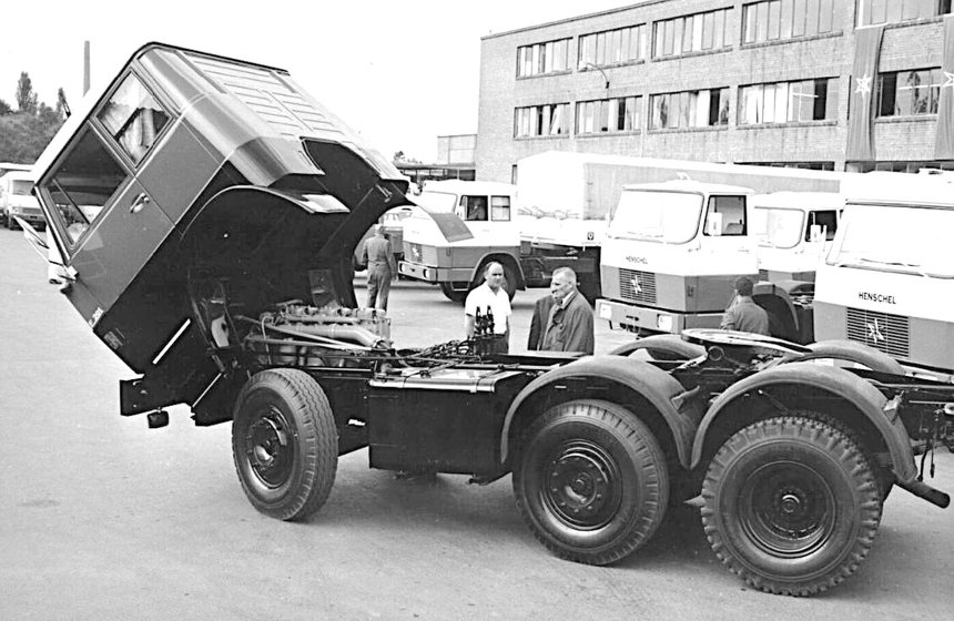 En 1961, le constructeur allemand Henschel présentait une nouvelle cabine avancée dont la conception et le style avaient été définis par le designer français Louis L. Lepoix. Cette cellule, très réussie, a par la suite évolué jusqu’à cette version équipant, à partir de 1967, les grands routiers F 161, F 221 et autres F 261.