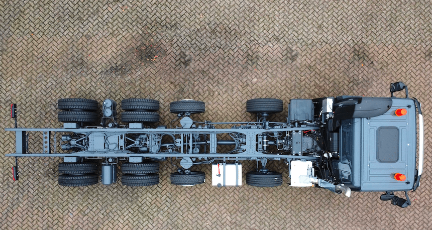 Ce châssis-mystère apparemment banal ne l’est pas tant que ça. De petits détails ont en effet de quoi surprendre… qui peuvent aussi mettre sur la voie pour en trouver la marque et deviner l’utilisation qui en sera faite.