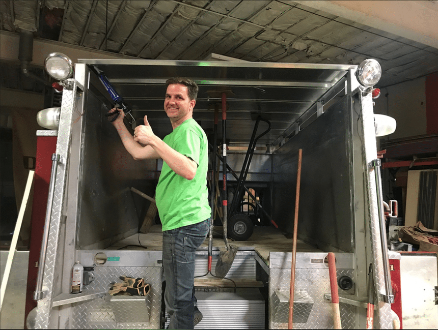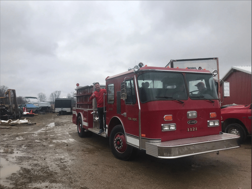 De retour dans sa ville natale, ce dernier se met à la recherche d’un véhicule de pompiers à transformer, en vain. Le temps passe jusqu’à ce qu’il tombe fin mars sur une annonce intéressante. Celle-ci avait été mise en ligne sur Facebook par un agriculteur de Coldwater, dans le Michigan, une bourgade à environ deux heures de route de Toledo. Ce dernier venait d’acheter récemment un camion pompe avec l’intention d’arroser ses champs. L’engin qui appartenait à la brigade des pompiers de Leonidas (Michigan) venait juste d’être remiser après 32 ans de service. Mais le véhicule étant trop lourd, l’agriculteur a décidé de s’en débarrasser. L’affaire s’est conclue en 72 heures chrono, après que Kevin ait obtenu son prêt bancaire.
