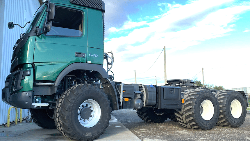 Mais il était aussi question, à leur propos, d’une double relation avec la France. La première, généralement trouvée, c’est la Guyane, territoire français d’Amérique du Sud. La seconde – élucidée par Baptiste Le Lay et Florian Grosguth – c’est l’entreprise qui les a transformés pour cet usage avec, en particulier, d’énormes pneus Vredestein pouvant être utilisés à très basse pression. Cette société, basée dans la Drôme, s’appelle BullTech System. Ses modifications sur camion forestier concernent notamment les suspensions, les ailes et passages de roue, les marchepieds et les vitesses d’avancement.