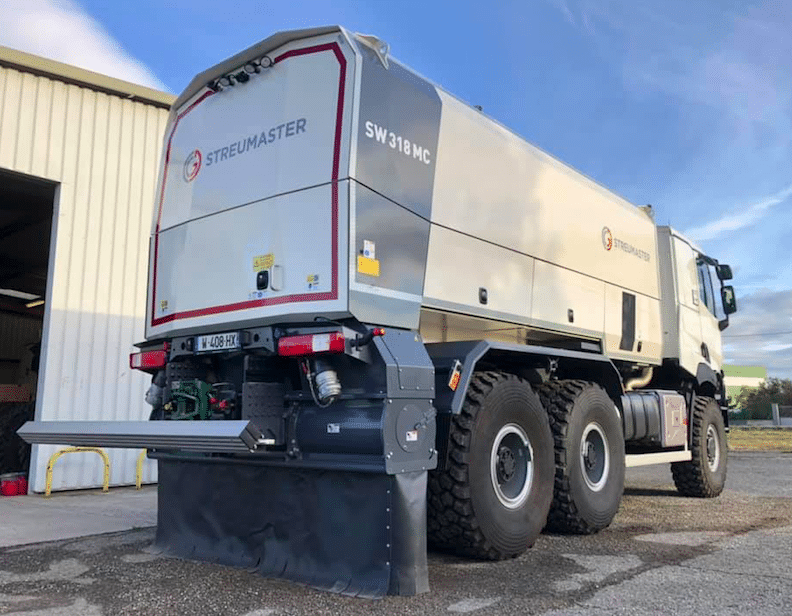 Par la suite, et selon le même principe, des Renault K 6×6 ont été modifiés pour réaliser des opérations d’épandage de liant (chaux) pour la stabilisation de sols.