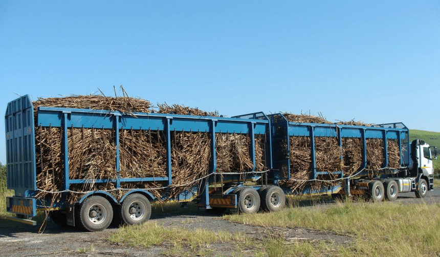 Notre camion-mystère de mardi n’avait, au fond, rien de bien compliqué. Mais, vu d’Europe, où sa carrosserie ne nous est guère familière, il pouvait susciter étonnement et interrogations. Celle-ci est produite en Afrique du Sud par Transpec – un carrossier industriel qui fait bien d’autres choses encore – et elle est typique des pratiques du pays dans ce secteur agro-industriel. Quant aux chaînes, elles servent tout simplement au déchargement de la cane à sucre, par basculement. En voilà d’ailleurs quelques exemples, chargés, dans différentes configurations, porteur-remorqueur et B-train, associées à des camions Mercedes Axor.