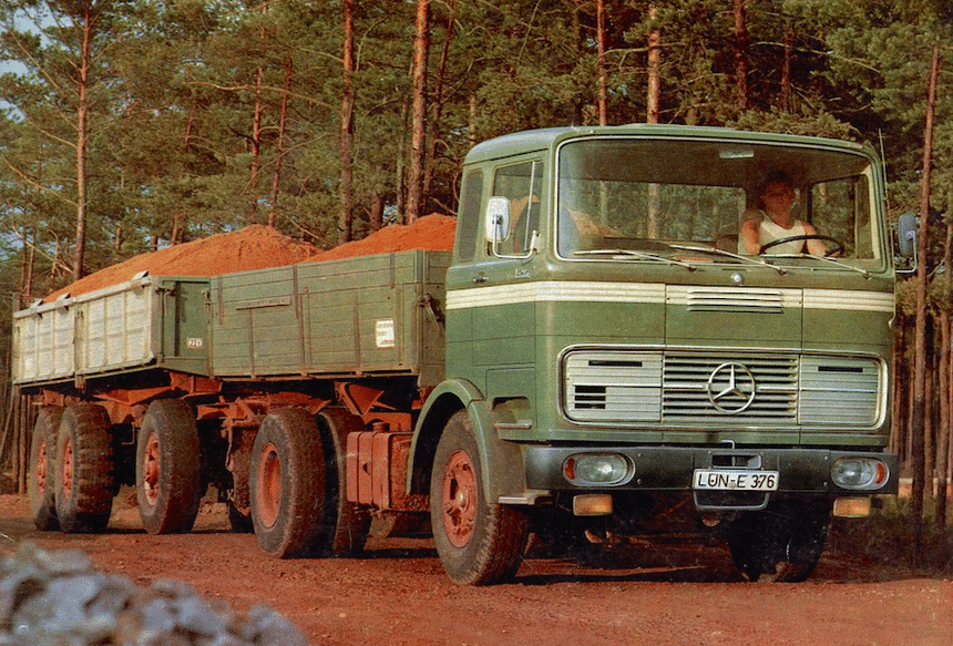 Anguleuse, plutôt bien aménagée pour l’époque et généreusement vitrée, la cabine avancée dite « cubique » de Mercedes est apparue en 1963 sur un modèle routier puis a rapidement évolué avec d’autres variantes, notamment de gamme intermédiaire. La version initiale était une cabine mi-longue ne réservant qu’un espace mesuré au couchage et aux rangements ce qui convenait mal à la longue distance. Deux ans plus tard, une cellule allongée fut donc ajoutée. Seul regret, cette cabine moderne n’était pas basculable et l’accès à la mécanique restait mal aisé.