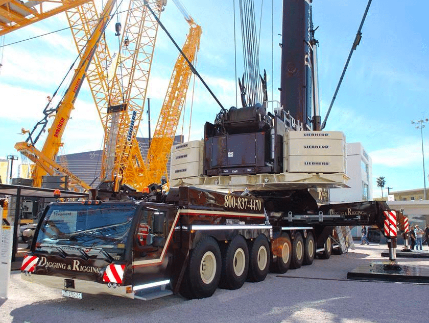 Car il s’agit bien d’un porte-grue et de bonne taille encore. Photographié en 2014, sans sa tourelle, il venait de recevoir la superbe livrée du levageur américain. Mais l’ensemble n’allait pas tarder à être complet et devenir une vraie grue Liebherr LTM1750-9.