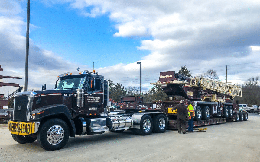 Celui-ci, mis en service en 2017, a dû compter parmi les tout derniers produits. On le voit attelé à une semi-remorque à plateau surbaissé sur laquelle a été chargée une grue sur porteur Link-Belt.