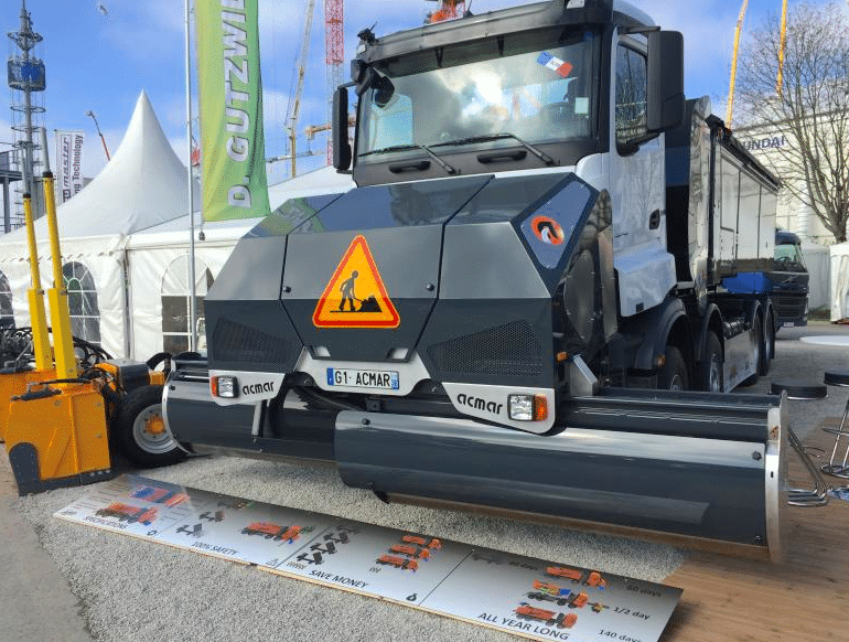 Une belle idée qui revient à l’équipementier français Acmar, spécialisé dans la fabrication d’épandeuses, gravillonneuses et autres points-à-temps. Quant à la transformation de la cabine, elle a été réalisée par un autre spécialiste français de renom, la Carrosserie Brevet.