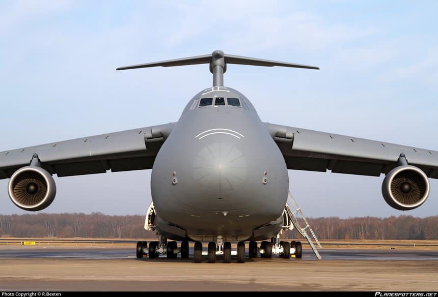Le C-5 Galaxy compte parmi les plus gros avions du monde. Il peut transporter 92 t sur 3 440 km, décharger son fret et reparcourir encore 800 km, sans ravitaillement en vol.