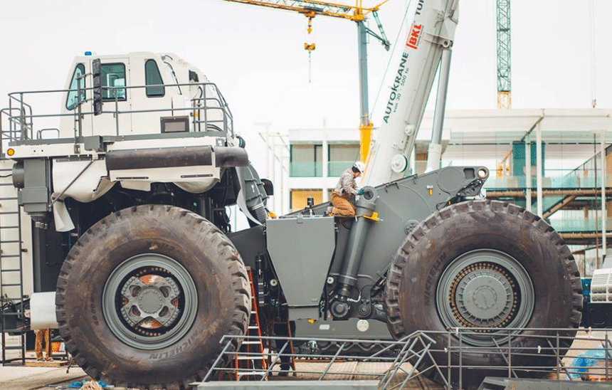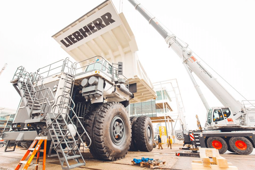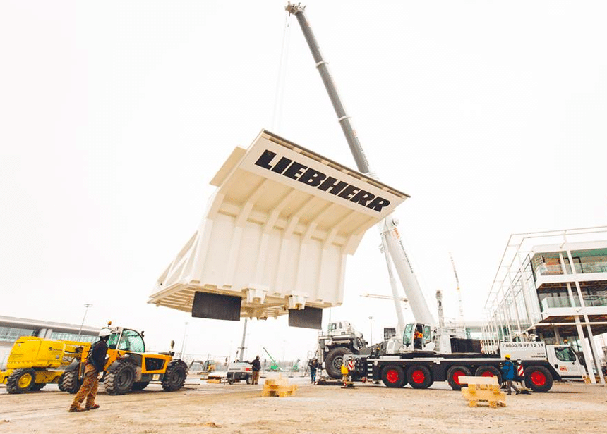 Une fois les composants rassemblés, la benne soudée, le montage a été rapide pour les équipes de Liebherr parfaitement rôdées à cet exercice.