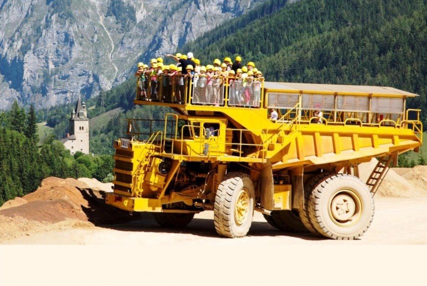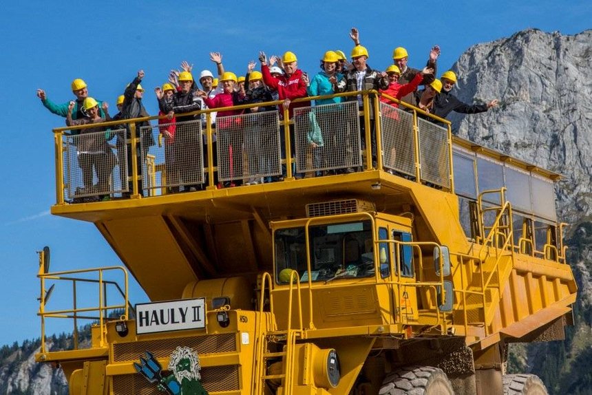 Du transport de voyageurs. Voilà ce que ces deux dumpers Wabco font désormais dans une mine à ciel ouvert d’Autriche. Et pas n’importe quels voyageurs, des touristes !