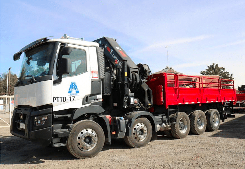 Sinon qu’avec un essieu additionnel arrière en jumelé et non dirigé, ça n’est sûrement pas un modèle européen. Effectivement, il travaille au Chili et sa grue Hiab est une 80 t.m. À noter qu’un autre C460, identique à celui-ci, a également été mis en service dans le pays, mais équipé d’une grue Fassi.