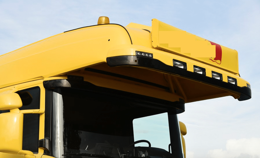 Voici un Scania R 730 qui a du style! Quelle pourrait bien être la mission de ce porteur 6×2 pour le moins atypique? Et surtout, à quoi peut bien servir cette casquette de toit?