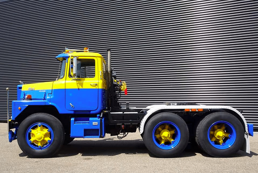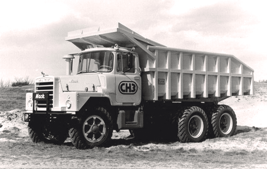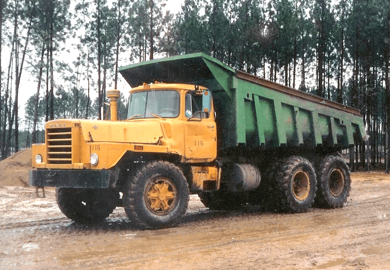 Les Mack DM ont été fabriqués en grand nombre de 1965 à 1988, certains ont été utilisés en France, en chantier, en carrière ou en convoi exceptionnel. La version DM 800, la plus lourde (jusqu’à 46,7 t de PTC), avait un essieu avant reculé. Il existait aussi un modèle 6×6, le DMM, qui sera également commercialisé en 8×6 aux Canada.
