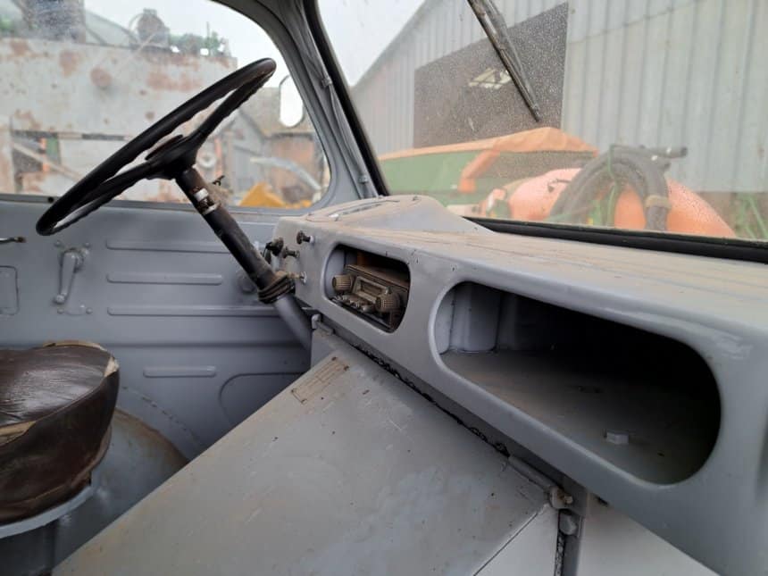 Le camion. Xavier et Frédérique possèdent un Renault R 2067 de 1, 5 t qui date de 1957 avec un moteur à 4 cylindres et des soupapes latérales. Il dispose de 4 vitesses et d’une marche arrière. Le démarrage se fait en prise directe avec un gros levier dans la cabine, il n’y a pas de clé juste un contact.