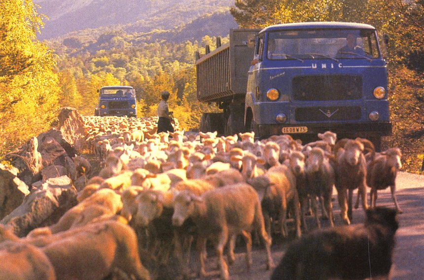 Avec pour commencer, deux Unic Izoard de 1964 immobilisés au beau milieu d’une transhumance. Des modèles de première génération dotés du tout nouveau V8 Unic donné à 225 ch puis à 270 ch SAE.