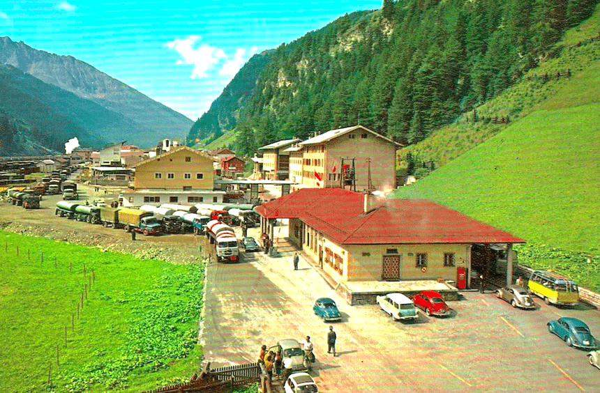 Allez, un dernier coup d’œil dans le rétro avec cette carte postale, non datée, mais qui doit remonter au tout début des années 1960. On y voit le poste de douane du col du Brenner, entre l’Italie et l’Autriche, avec ses longues files de camions en attente, principalement des Fiat italiens (collection Rick van Swieten).