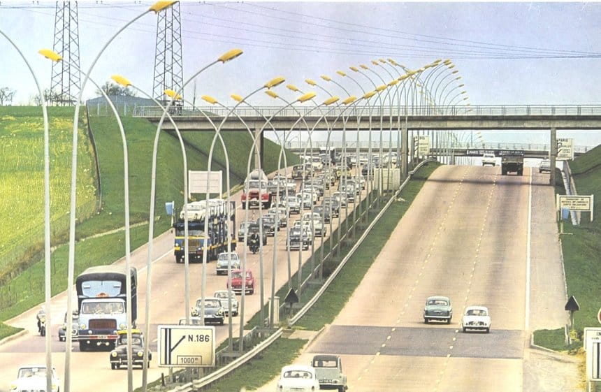 En France cette fois, le calendrier Unic de 1965 retenait cette photo d’une section parisienne de l’autoroute de l’ouest (alors d’une grande modernité), appelée à devenir l’A13. Évidemment, sur la file de droite, trois camions Unic !