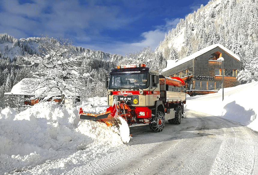 Puis, une bonne trentaine d’années plus tard, un MAN F2000 4×4, dégageant au moyen d’une lame biaise une petite route du Vorarlberg, en Autriche.