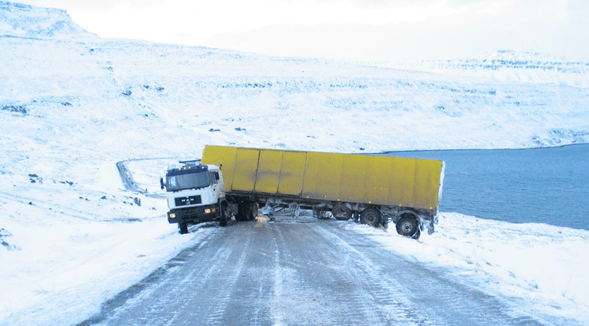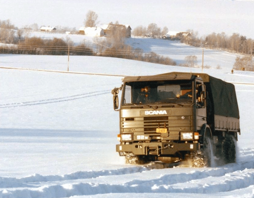Beaucoup plus récent, car datant du milieu des années 1980, ce Scania P82 4×4 de l’armée norvégienne patauge joyeusement dans la poudreuse. Du hors piste en toute sérénité. Contrairement à ce MAN F90 islandais qui, au début des années 2000, n’a pas échappé à une sortie de route, heureusement sans gravité.