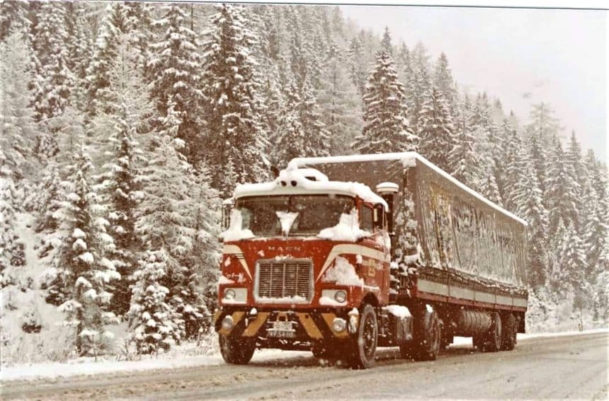 Une rencontre plus souvent subie que désirée, mais parfois inévitable. Autrefois, quand les camions étaient équipés de pneumatiques moyennement efficaces, dépourvus d’ABS et d’ASR, dont le chauffage/dégivrage en cabine restait rudimentaire, l’hiver n’était pas une partie de plaisir. Reste que le travail a toujours été fait.