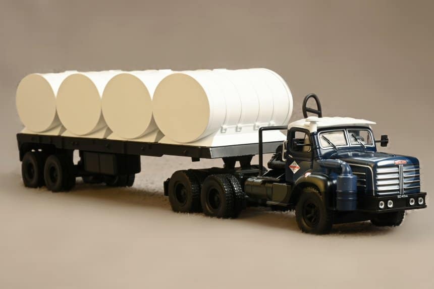 Et il présente en plus la crème du camion tricolore, avec trois Berliet mythiques en tête d’affiche, et d’autres poids lourds puisque le sujet est le transport routier d’un certain type de marchandise…