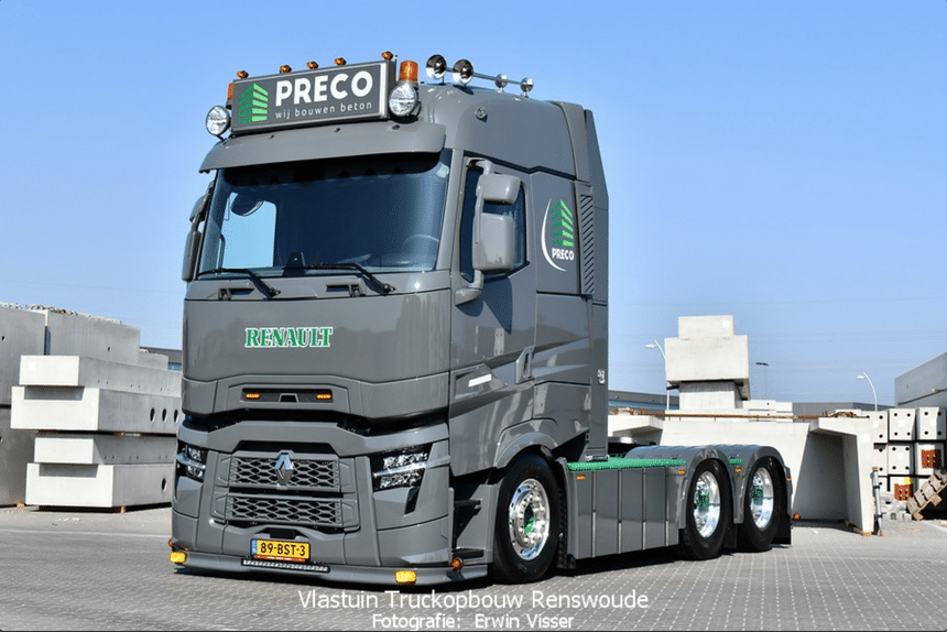 Ce magnifique Renault T-High 520 a récemment rejoint la flotte de la société Preco basée à Apeldoorn en Hollande, qui est spécialisée dans la fabrication