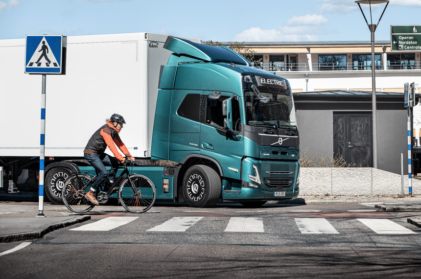 Volvo Trucks lance un nouveau système de sécurité pour détecter les autres usagers de la route dans l’angle mort des deux côtés du camion. Détection