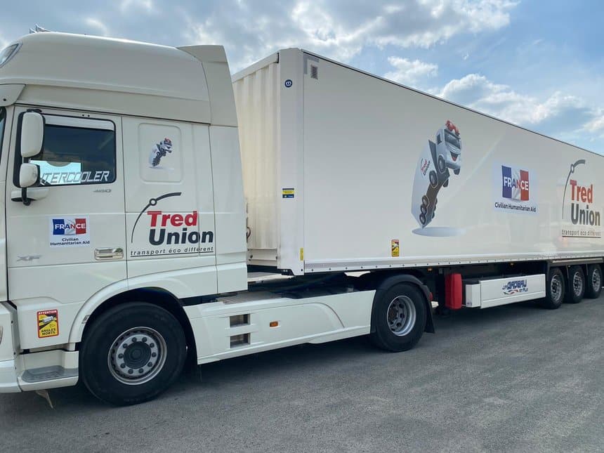 Cinq camions de transporteurs appartenant au groupement Tred Union ont pris la route en direction de la Pologne, le 25 avril, pour livrer à la