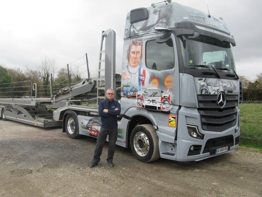 Le Mercedes Actros de Yann nous replonge dans l’univers du film Le Mans sorti en 1971, avec Steve McQueen dans le rôle de Michael Delaney,