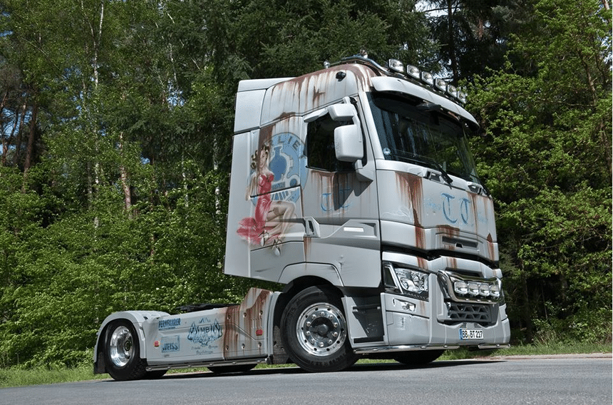 Stupéfiant ! Le second Renault décoré des Transports Talmon, basés près de Leipzig, en Allemagne, repousse les limites du genre. En jouant cette fois sur un