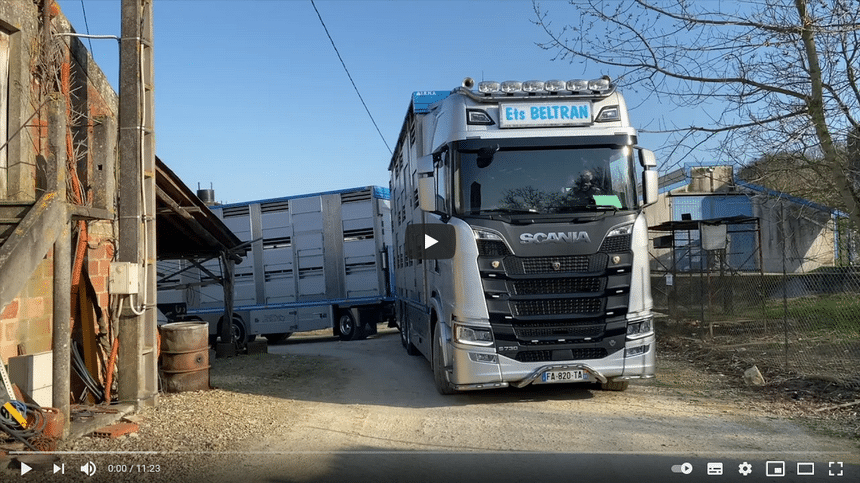 FranceRoutes propose l’essai du Scania 730 S dans une configuration d’activité au quotidien : un ensemble porteur-remorque 6×2 carrossé en bétaillère Irma pour le transport