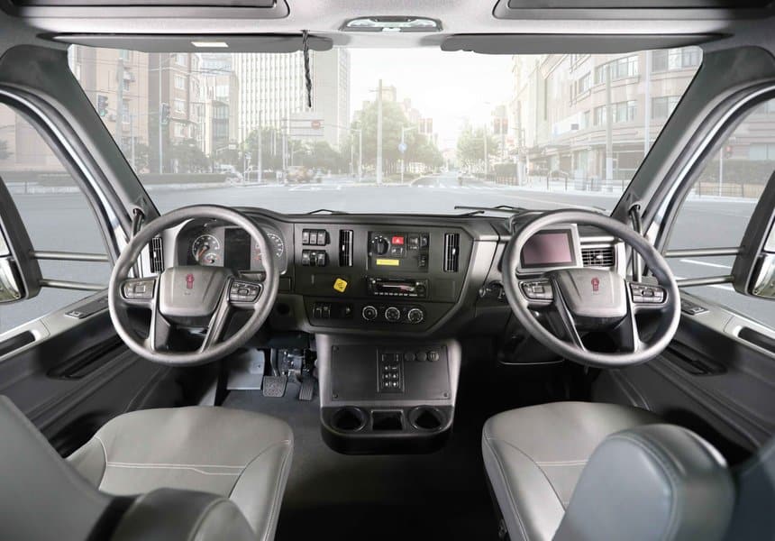 Une option évidemment réservée à certaines utilisations telles que benne à ordures ou balayeuse de voirie. Dans ces cas, la conduite à gauche sert aux